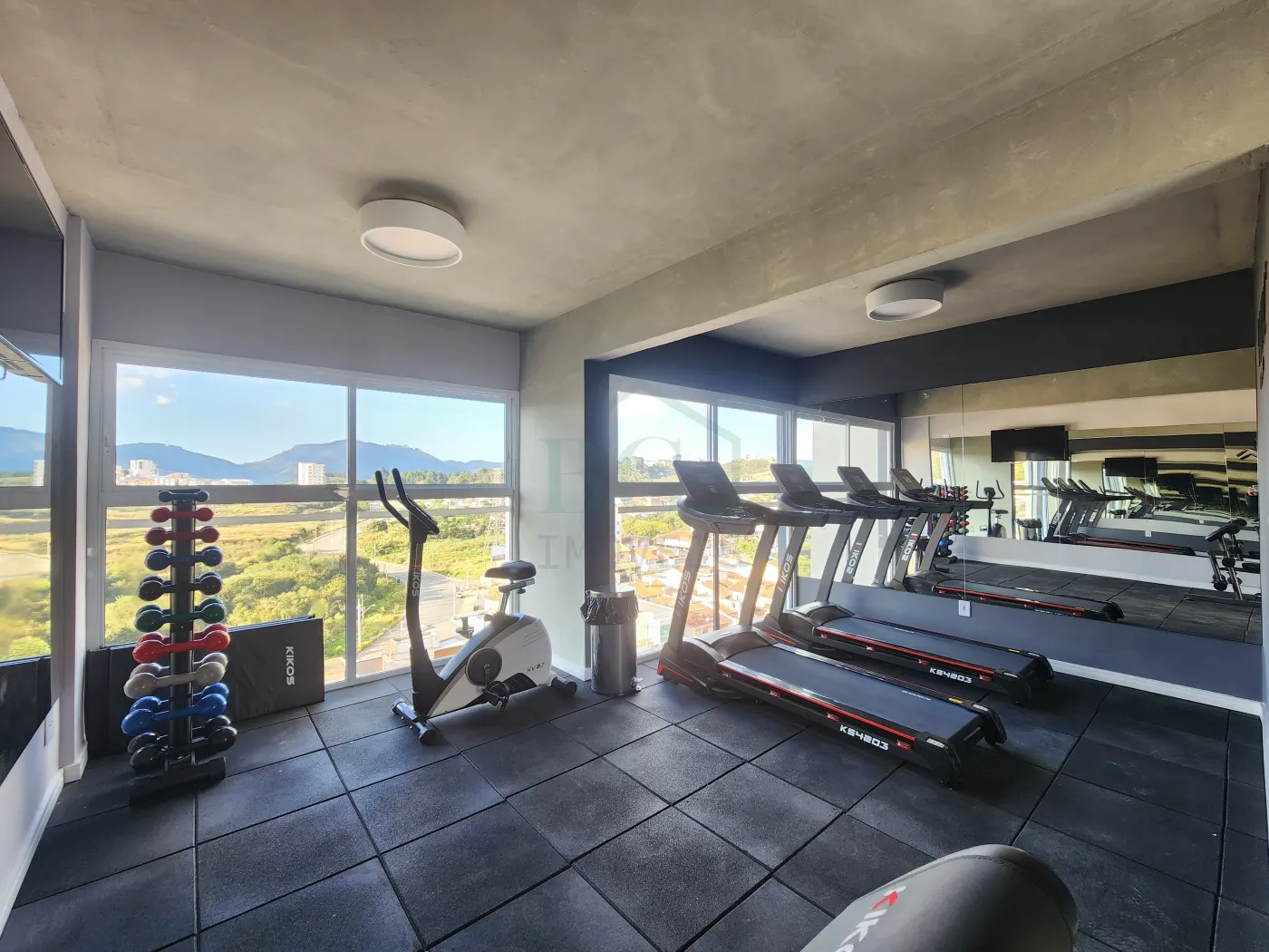 Academia moderna e climatizada, equipada com aparelhos para musculação e exercícios aeróbicos.