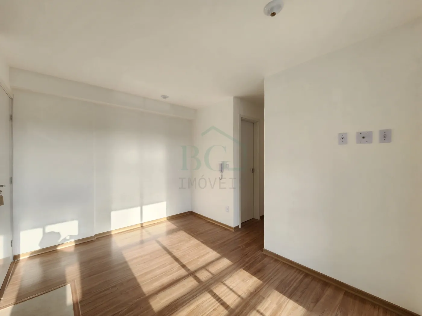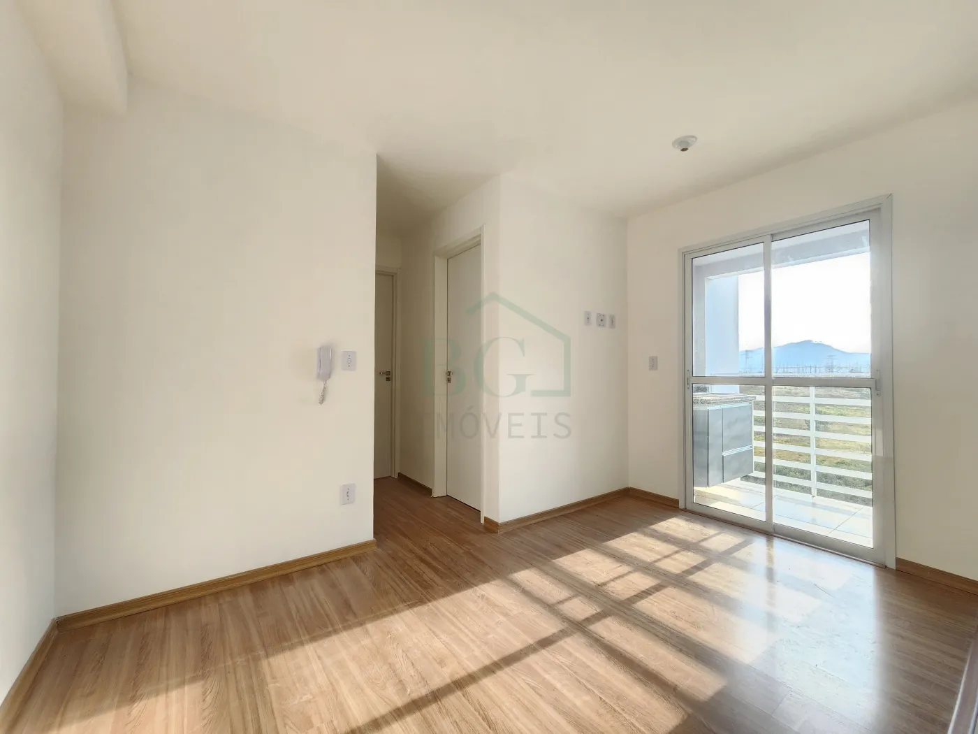 A sala de estar é espaçosa e aconchegante, com piso laminado de alta durabilidade e grandes janelas que favorecem a entrada de luz natural, ideal para compor ambientes como sala de TV e jantar.