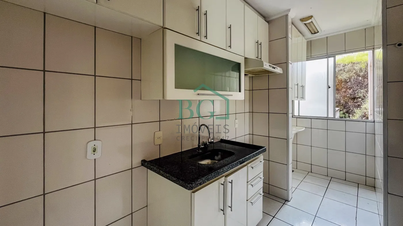 A cozinha é funcional e possui uma boa disposição, facilitando o preparo das refeições. É um espaço onde você pode soltar sua criatividade culinária, com armários planejados que otimizam o armazenamento.