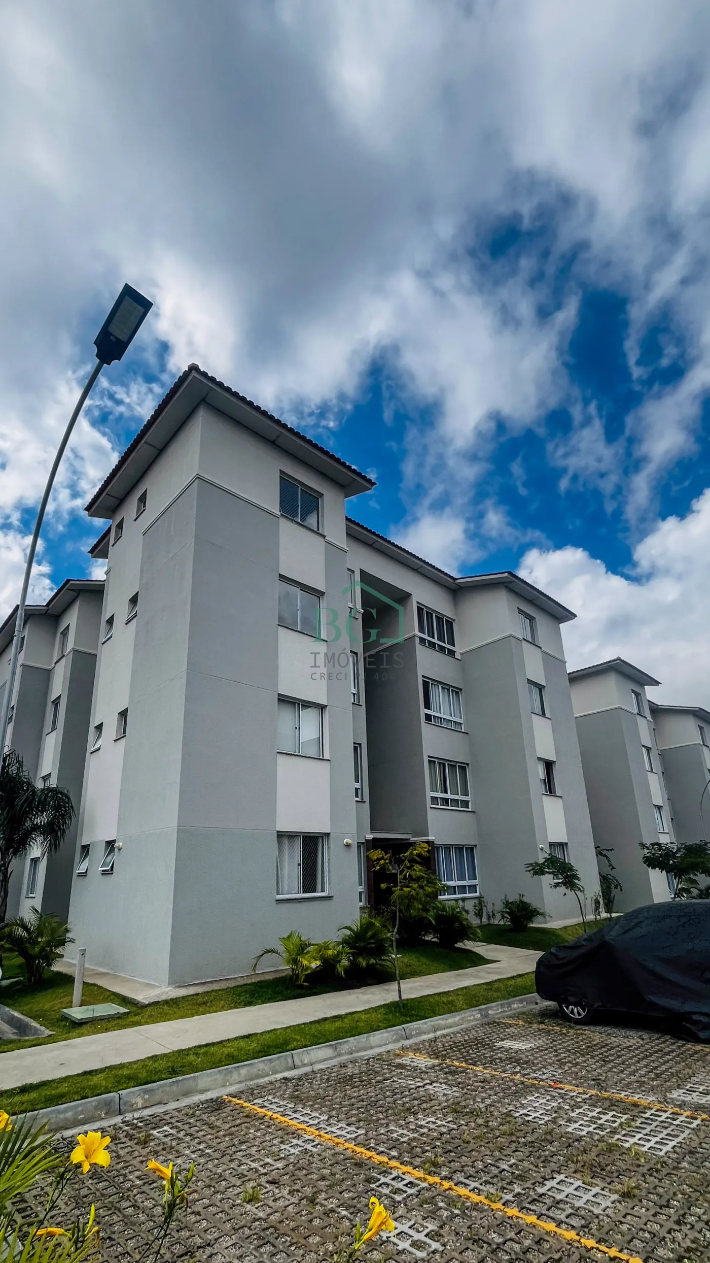 apartamento com 02 dormitórios, sendo 01 suíte, sala, cozinha, banheiro social, área de serviço e garagem.