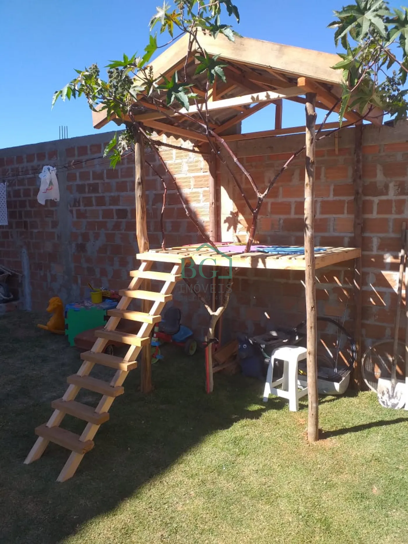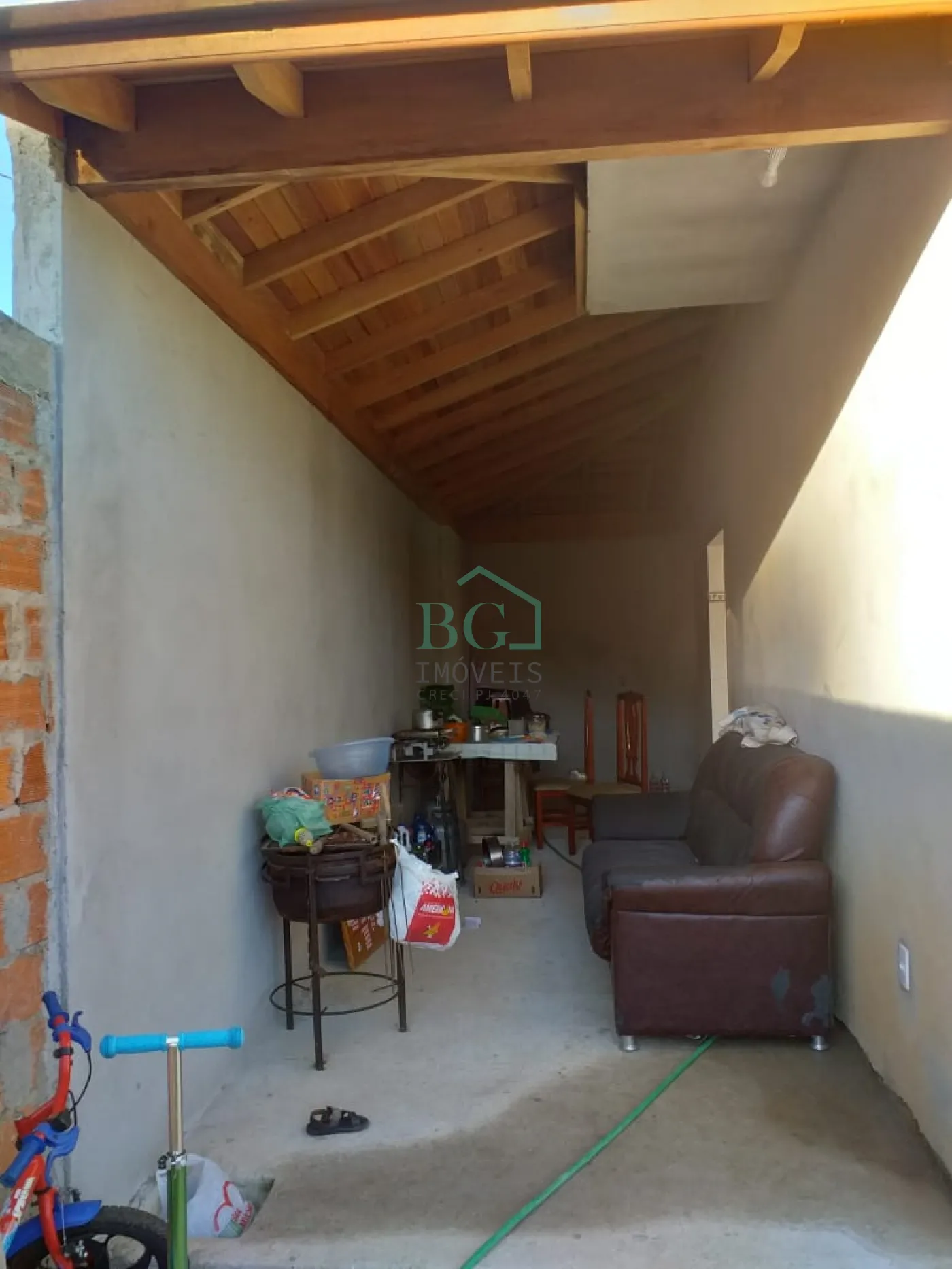 Na parte superior ainda em construção 2 quartos sendo 1 suíte, banheiro social e varanda.