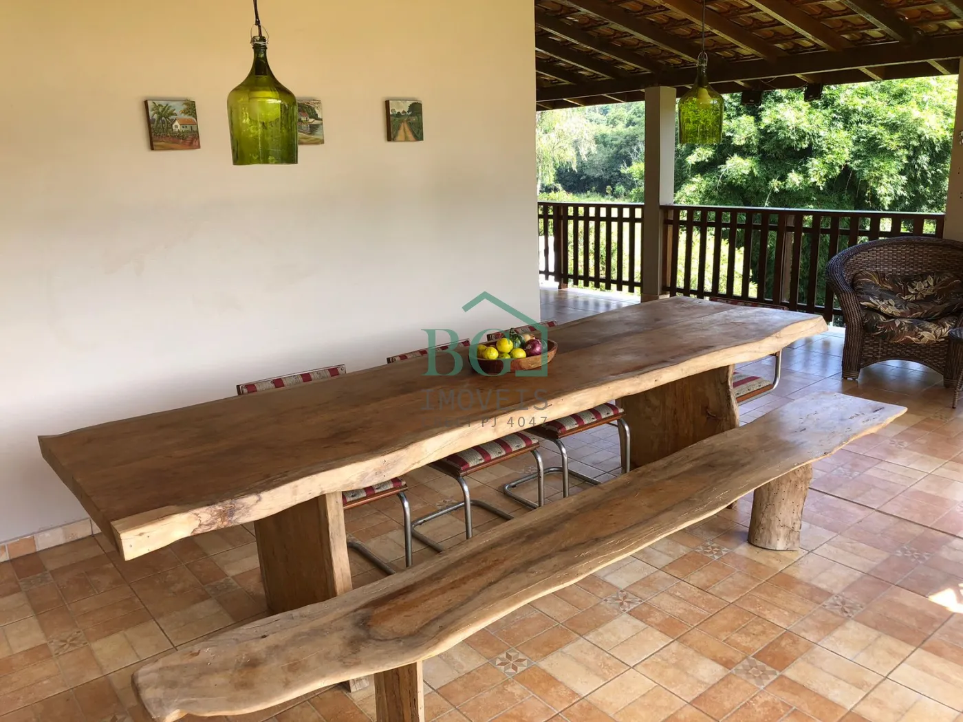 A casa possui aproximadamente 220 m², com duas cozinhas, sendo uma completa com armários embutidos e outra com fogão a lenha, sala, dois quartos com armários, dois banheiros sociais e uma ampla varanda com vista para as represas e para a mata.