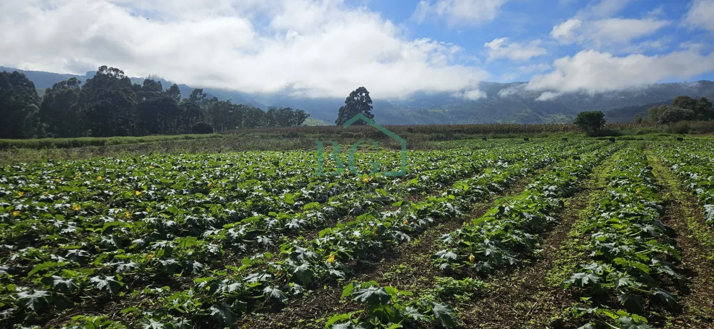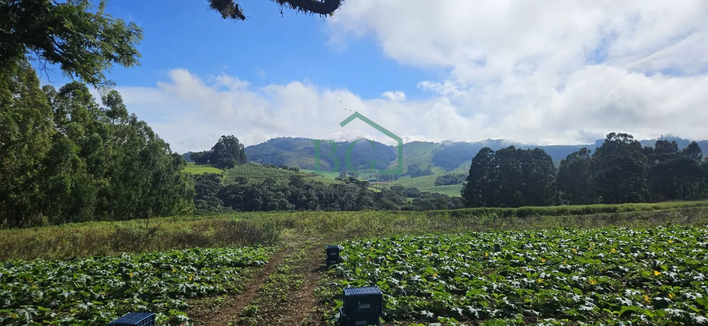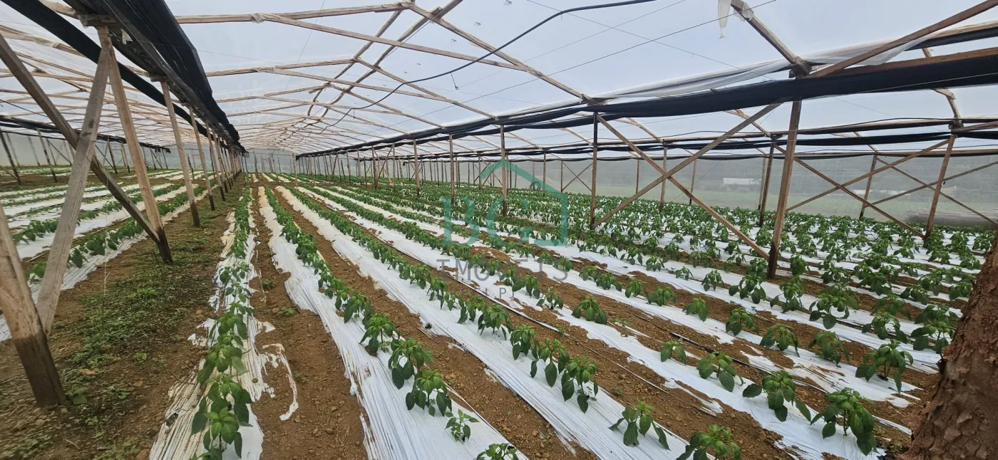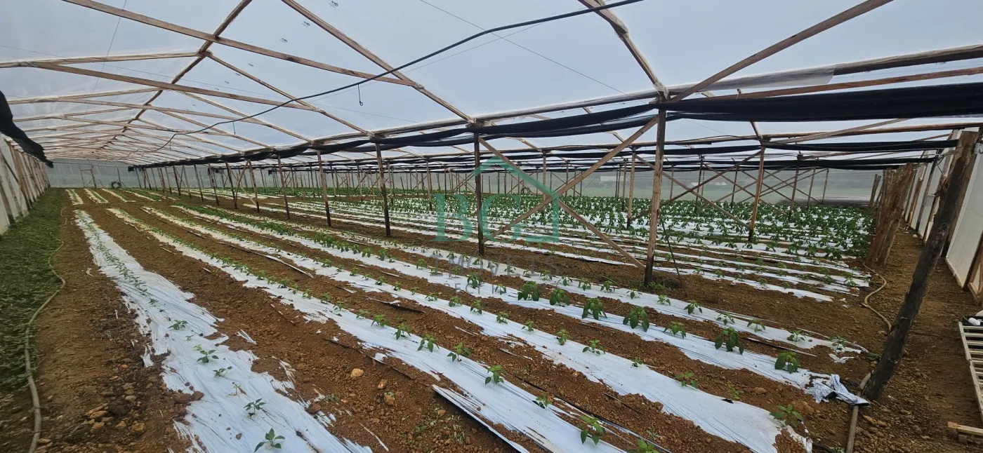 Na parte superior do terreno há sete hectares no total, sendo aproximadamente 12.000 m² destinados a área de preservação ambiental, seis hectares de área plantável com solo fértil e uma estufa de madeira com 2.500 m² construída em 2025, com abastecimento de água da represa e energia elétrica.