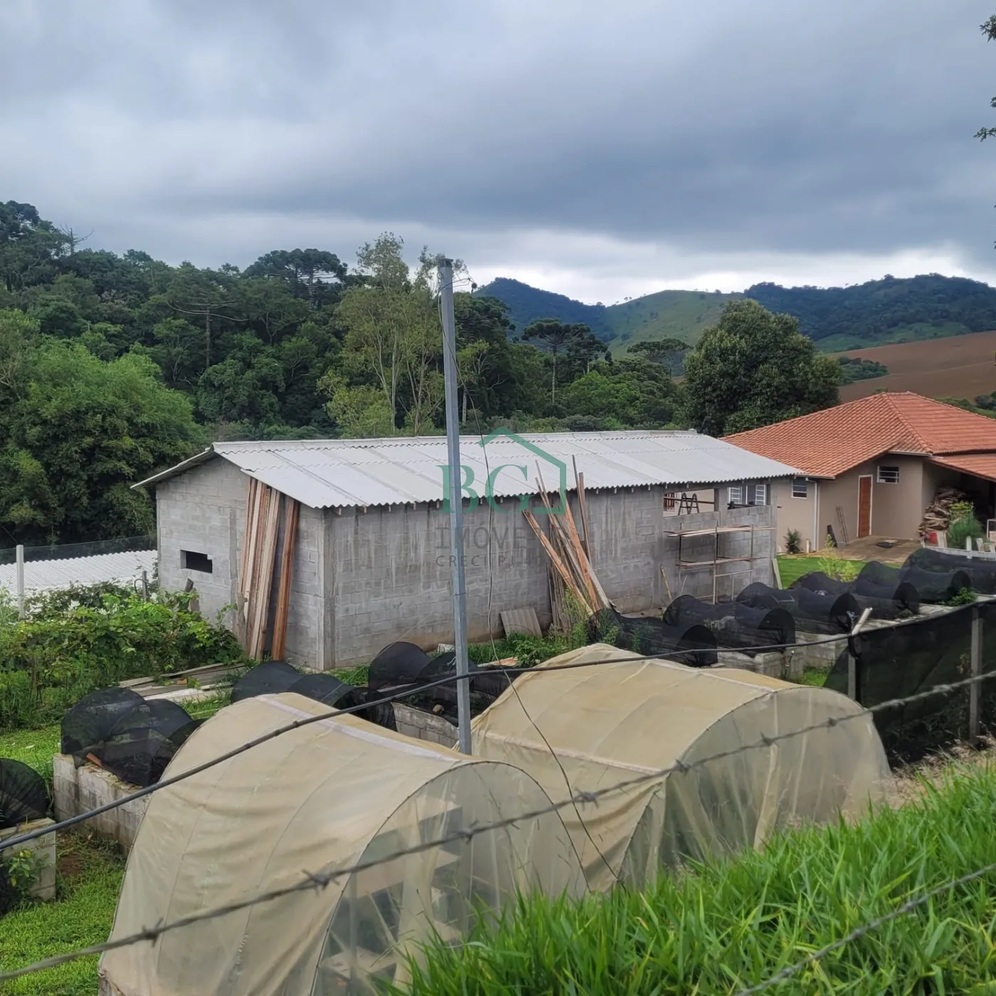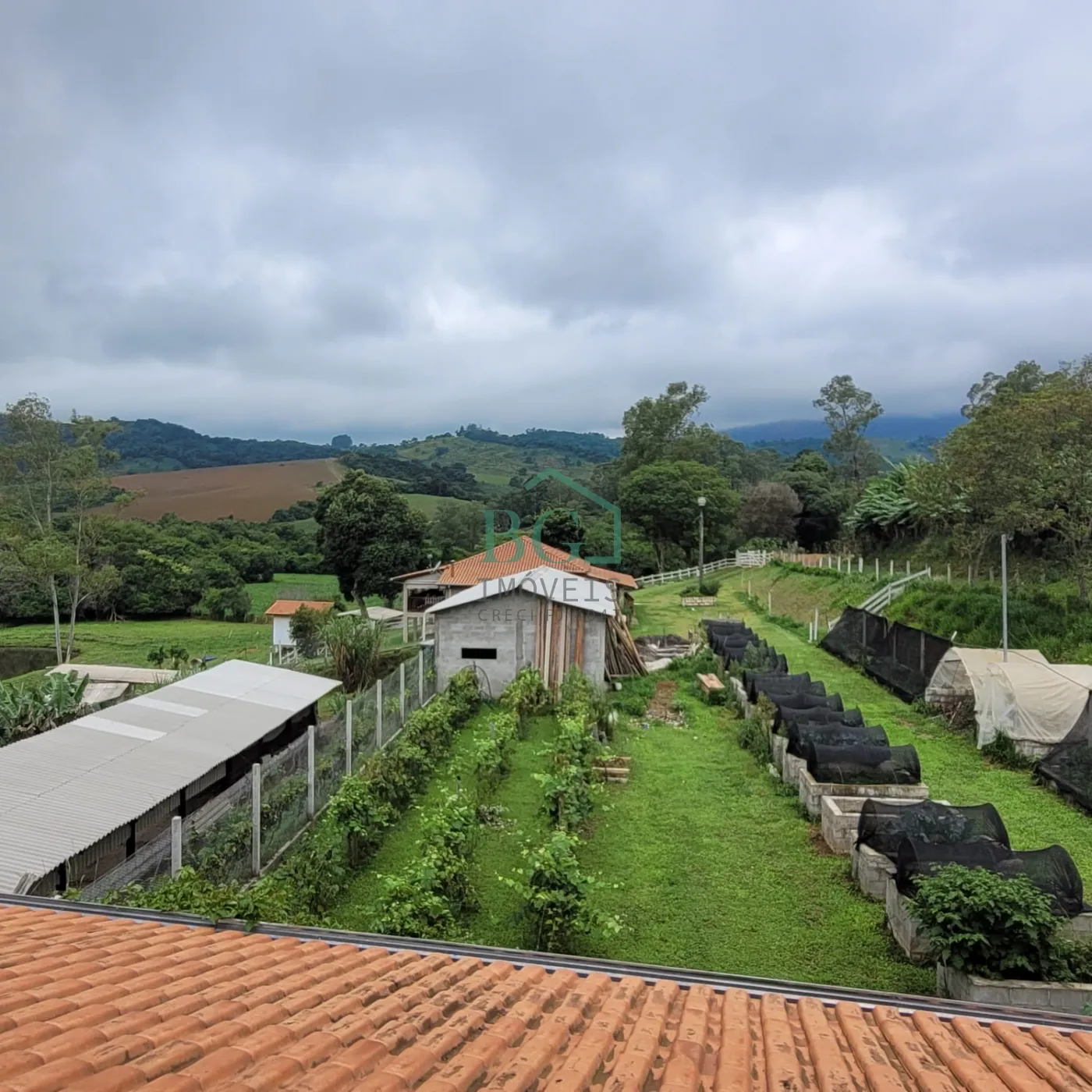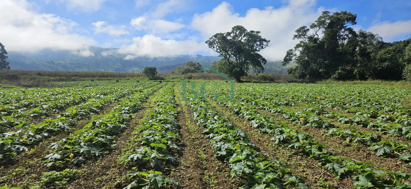 Na parte superior do terreno há sete hectares no total, sendo aproximadamente 12.000 m² destinados a área de preservação ambiental, seis hectares de área plantável com solo fértil e uma estufa de madeira com 2.500 m² construída em 2025, com abastecimento de água da represa e energia elétrica.