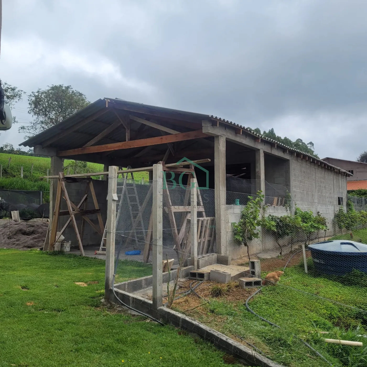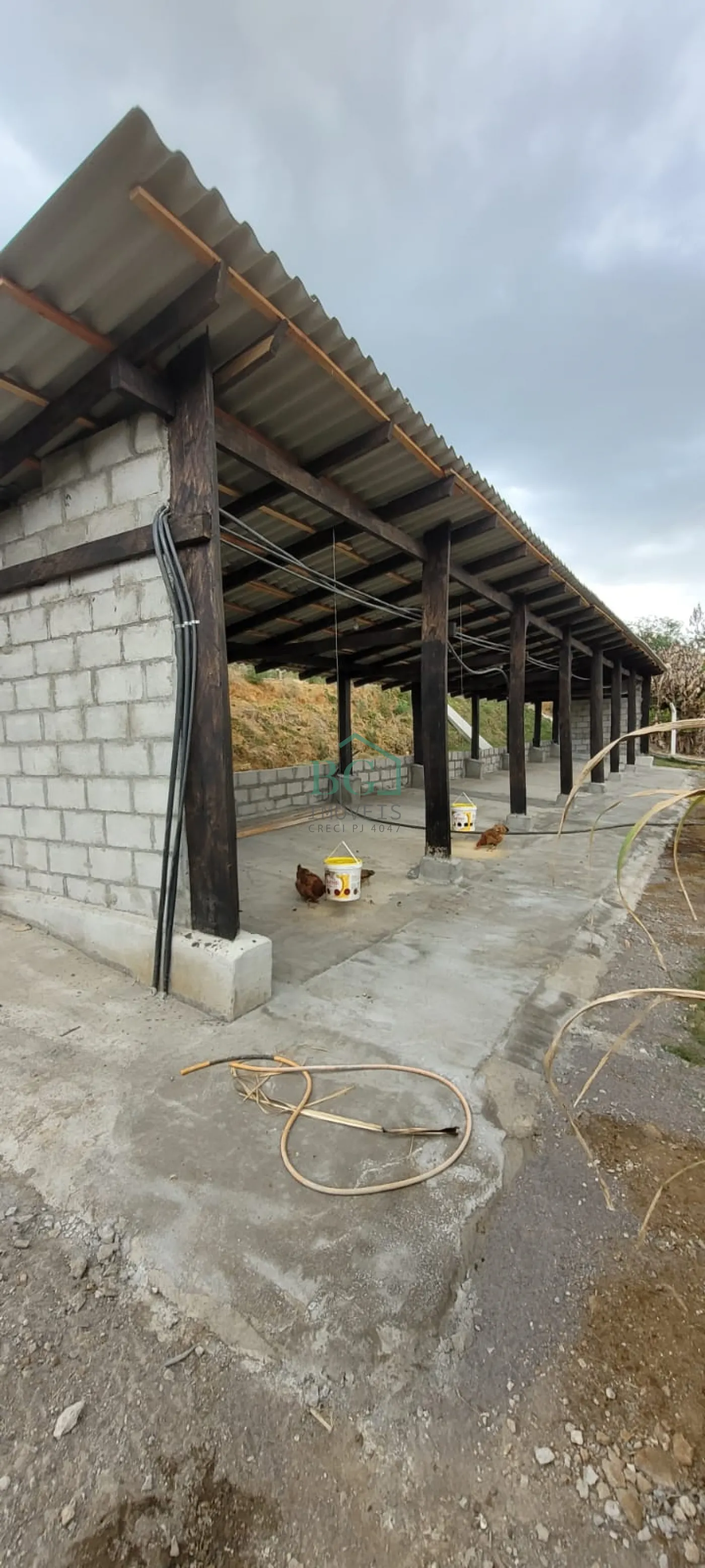 Conta com excelente infraestrutura, incluindo galinheiro com 1.500 m², galpão semiaberto de 92 m², estrutura fechada de 4 x 5 metros para armazenamento e processamento de ração, curral com seis piquetes totalizando 12.000 m² de pastagem, pomar em plena produção com 1.000 m², horta com três ruas de uvas e horta elevada a 80 cm construída em blocos de cimento com sistema de irrigação, jardim ao redor da casa, galpão fechado e área coberta aberta medindo 6 x 16 metros.