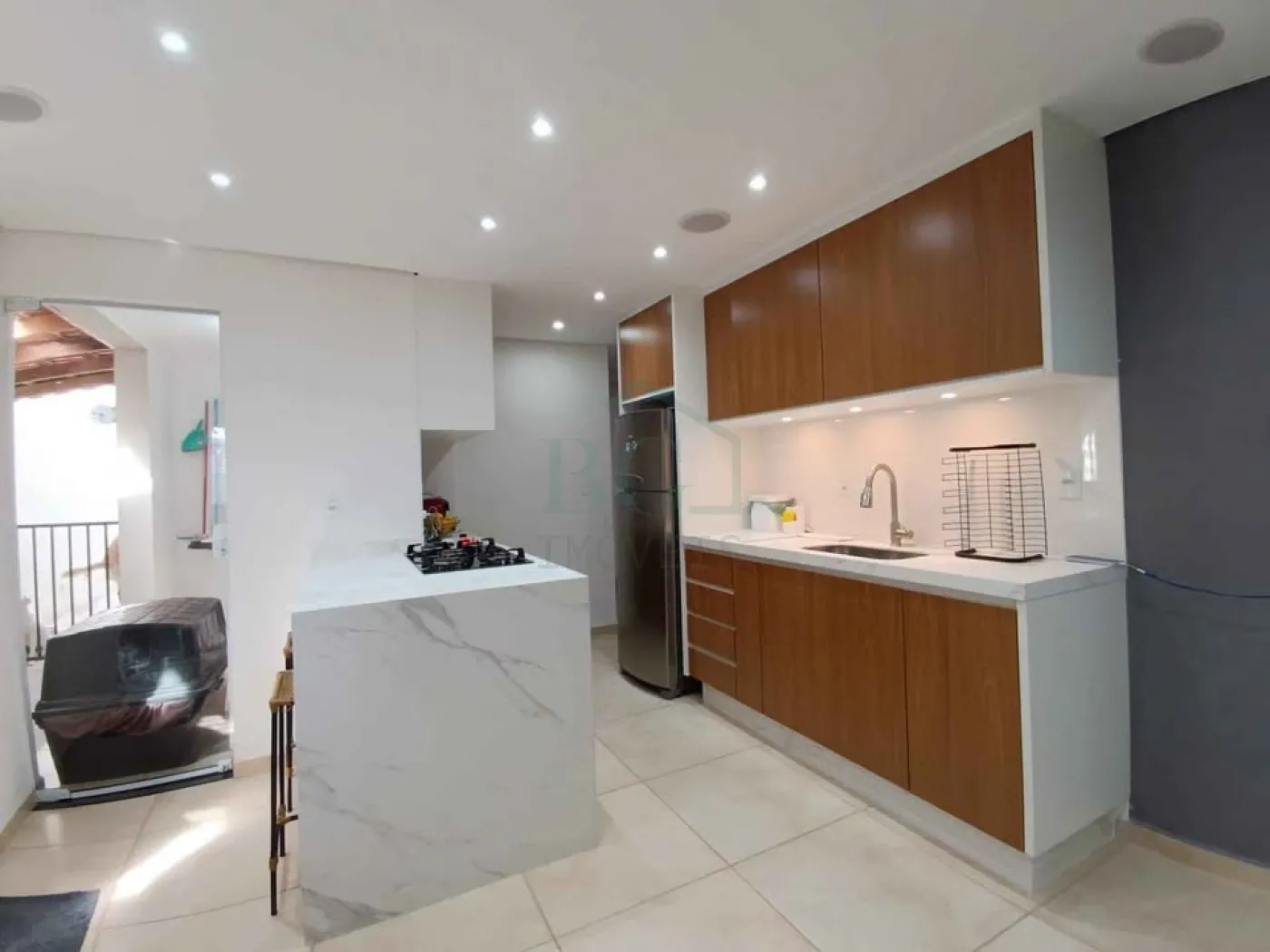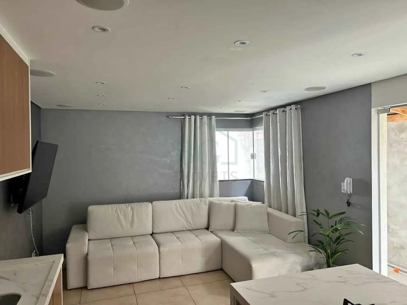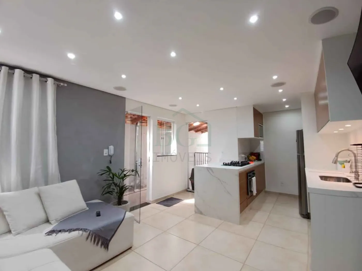 -Sala e cozinha integradas, com ambiente amplo e funcional