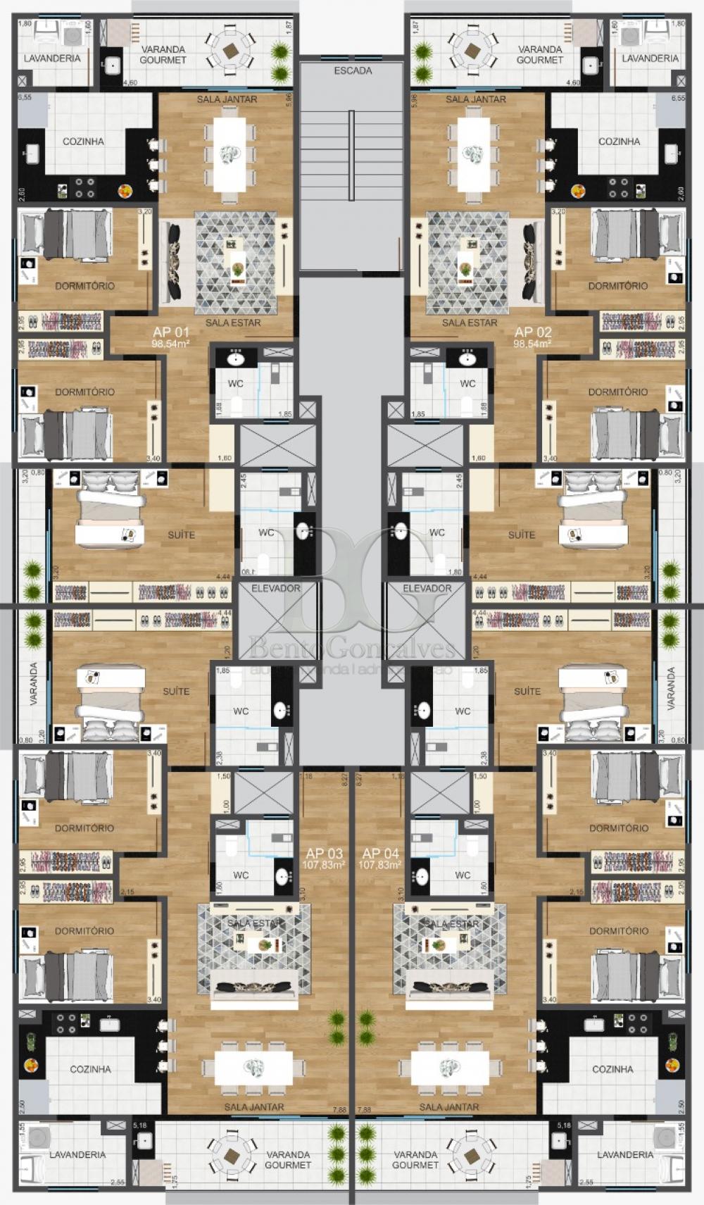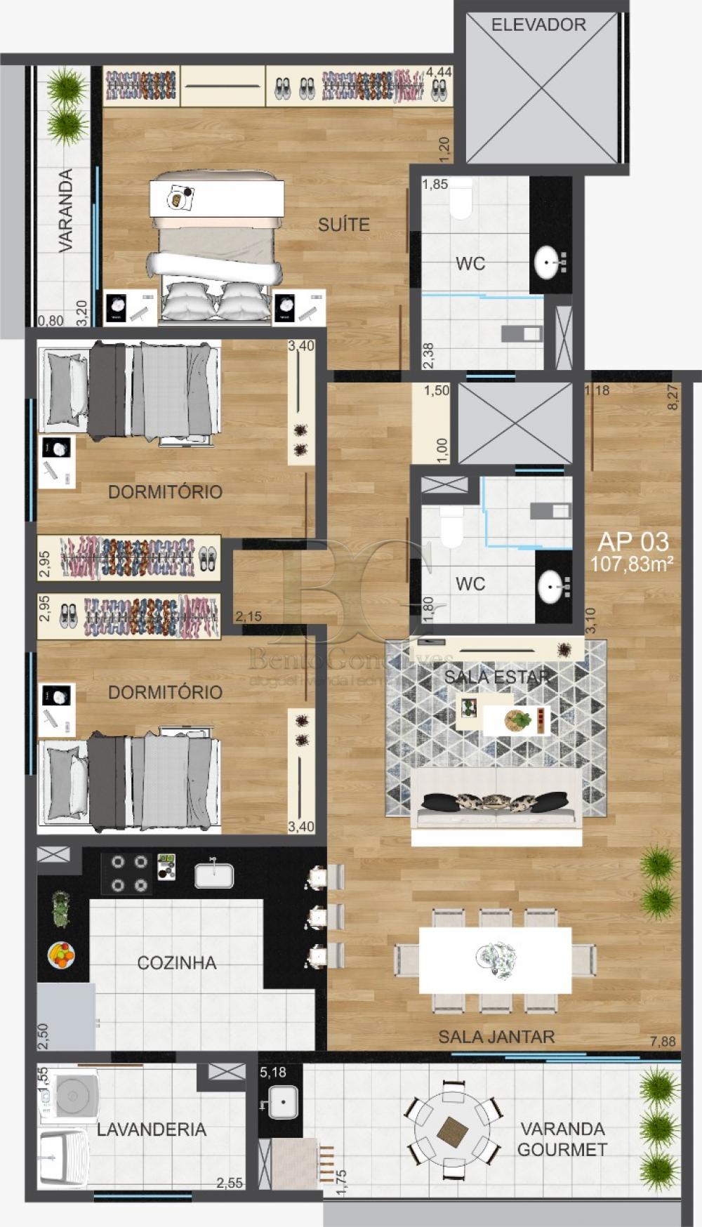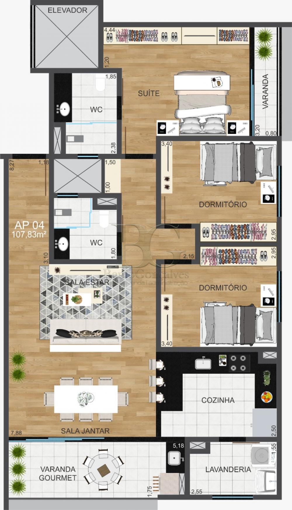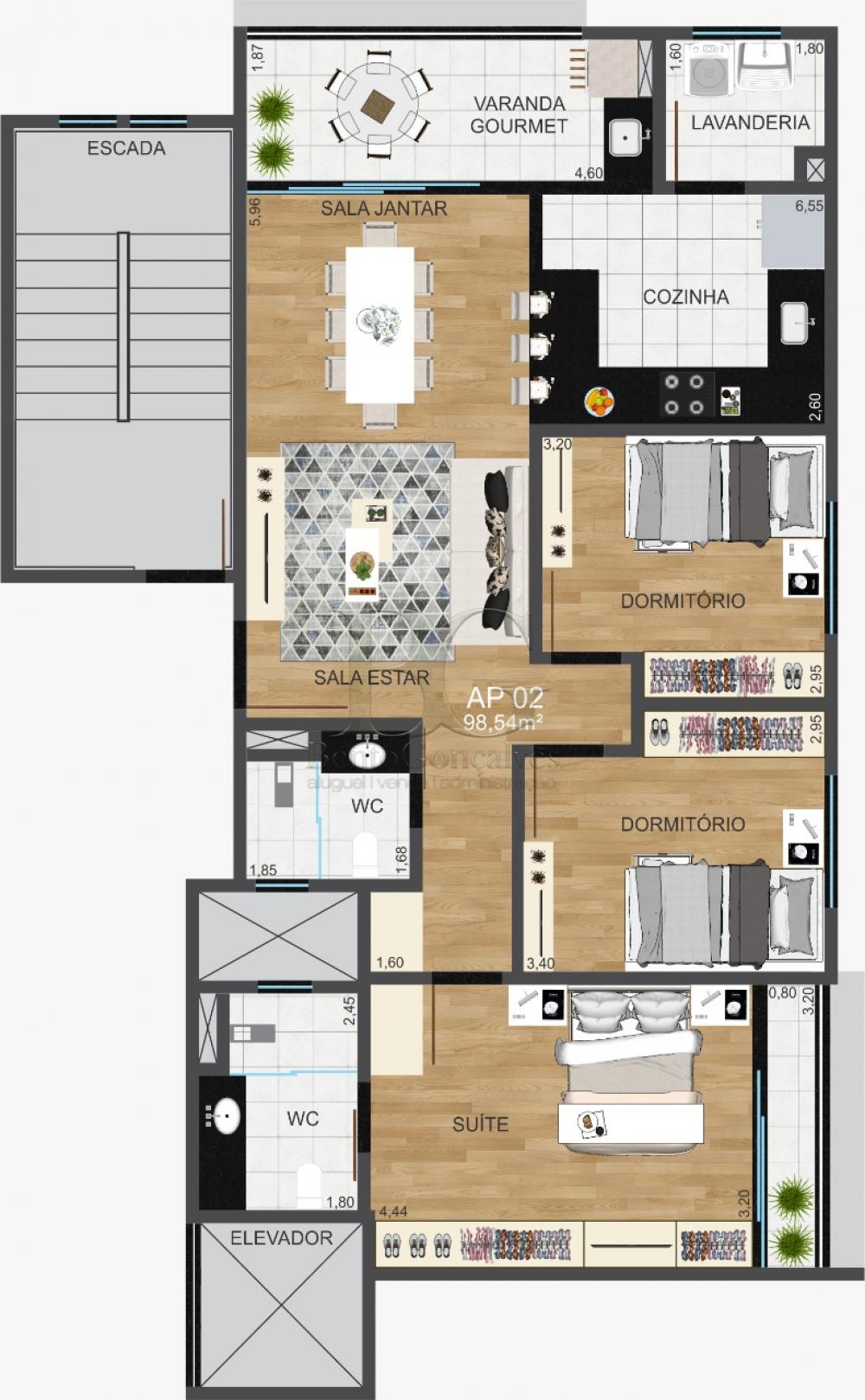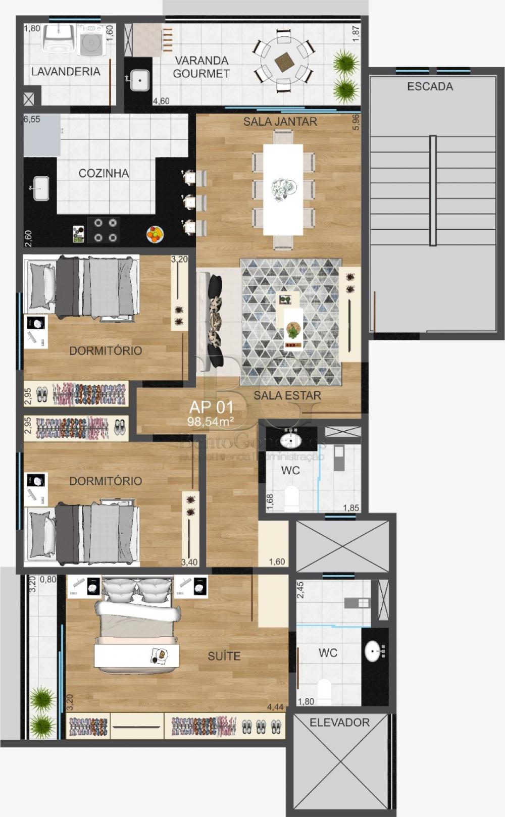 APARTAMENTO RESIDENCIAL, COM 03 DORMITÓRIOS, SENDO 01 SUÍTE, SALA, COZINHA, VARANDA GOURMET, BANHEIRO SOCIAL, ÁREA DE SERVIÇO E GARAGEM.