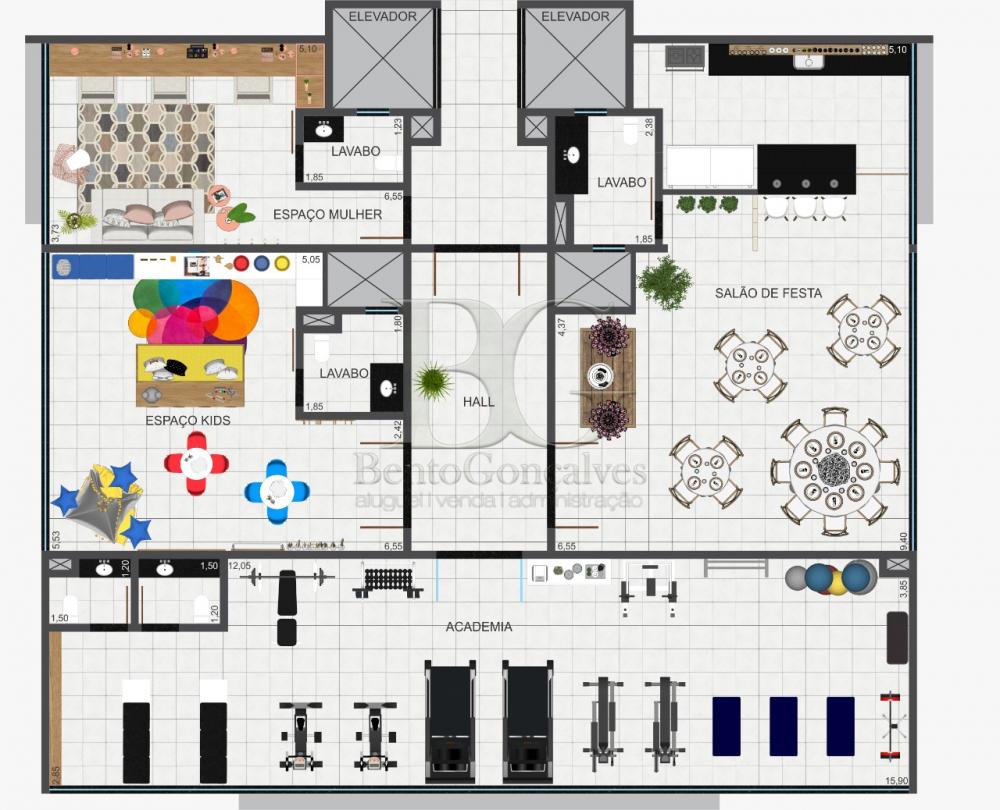 Área de lazer no décimo pavimento contendo: Academia, brinquedoteca, espaço mulher e salão de festas.