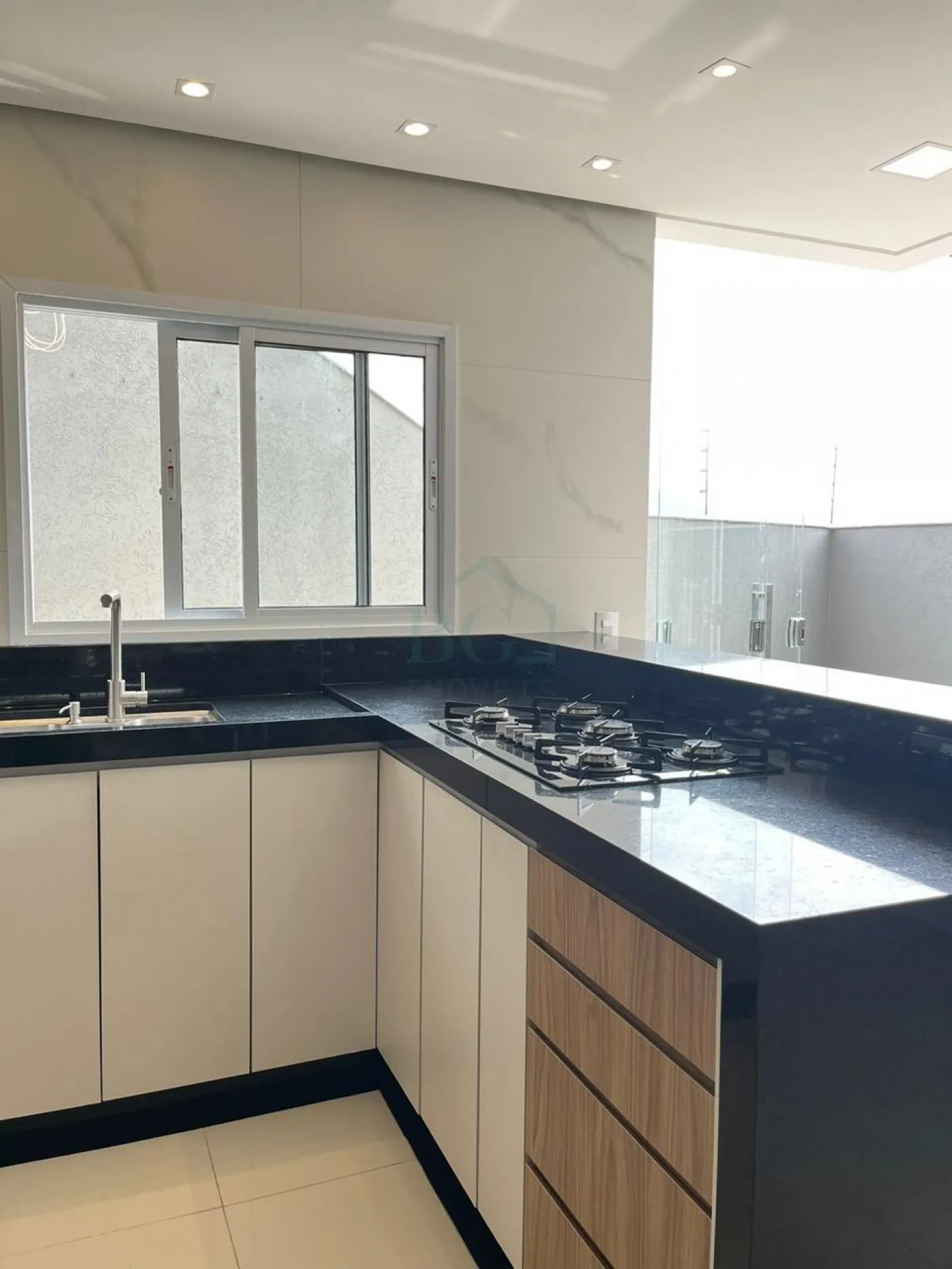 -Cozinha com bancadas em granito Preto São Gabriel e móveis planejados