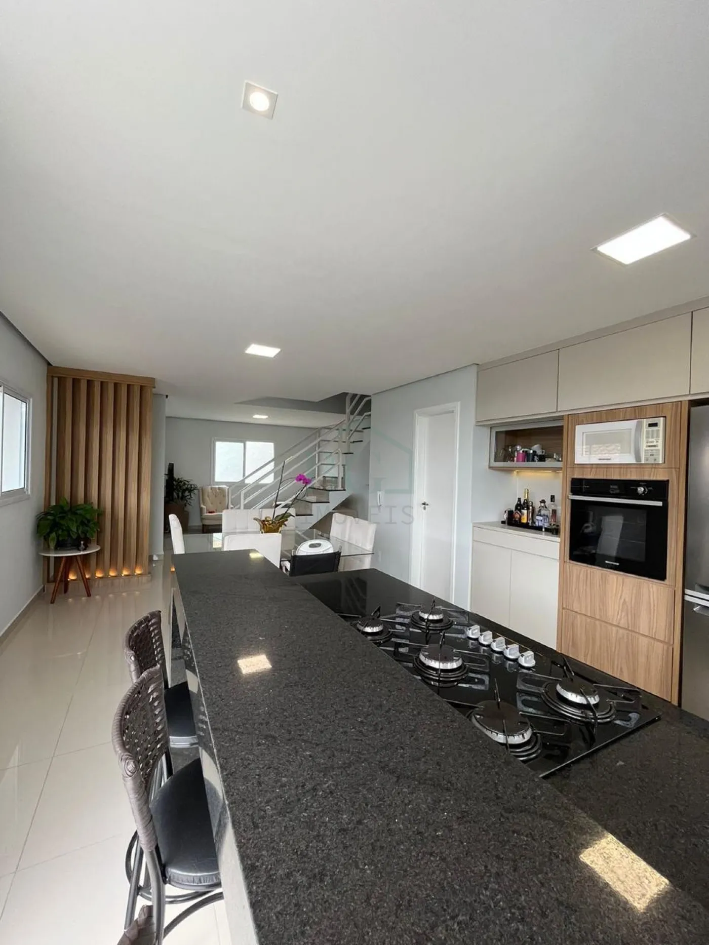 -Sala de TV integrada à sala de jantar, cozinha e área externa